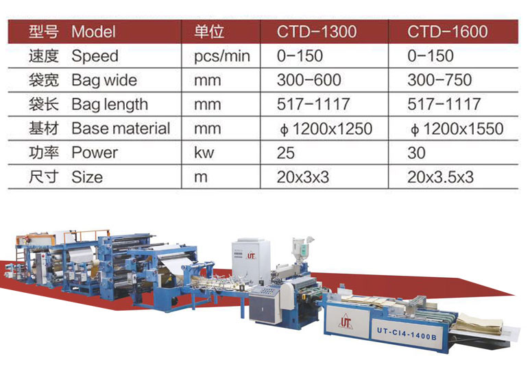 主要工作原理:將紙張和編織布覆膜收卷成整卷通過成型擠出進行中縫粘合,利用伺服和PLC進行跟標切斷。可生產(chǎn)產(chǎn)品:紙、編織布三合一袋、編織布二合一袋、四層紙袋。
